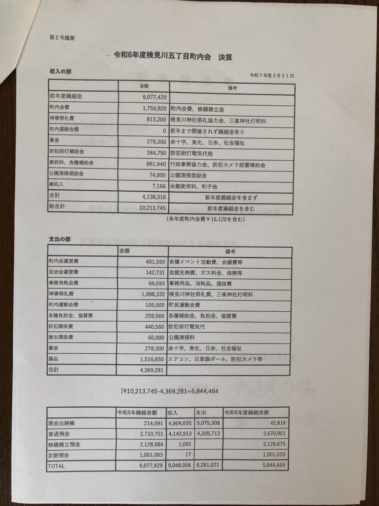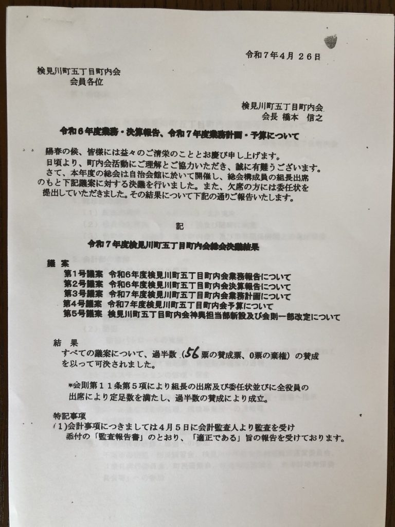 五丁目の総会が無事に終了!