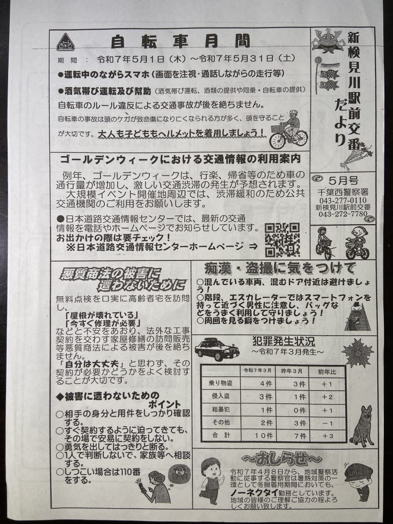 新検見川駅前交番だより