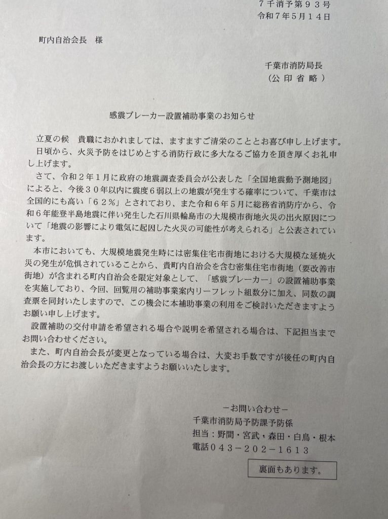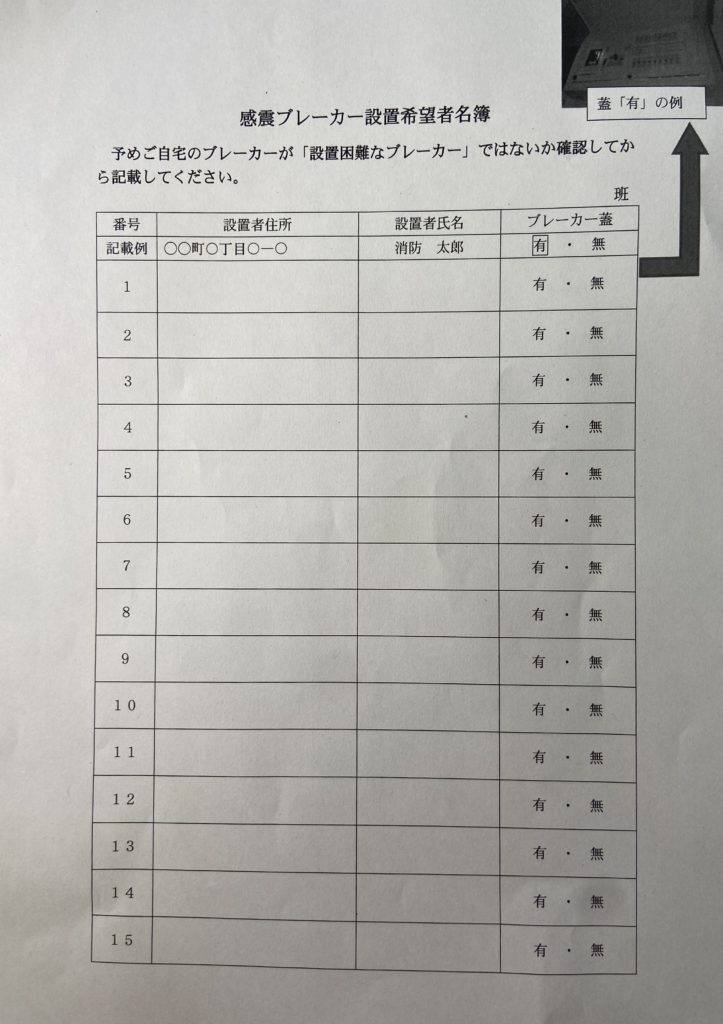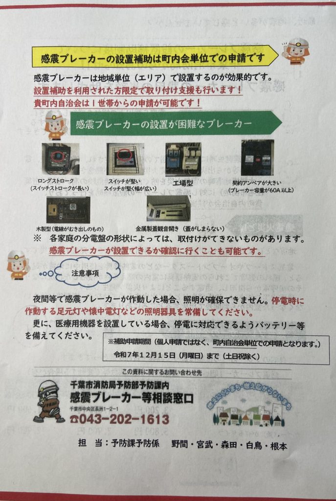 感震ブレーカー設置補助事業のお知らせ
