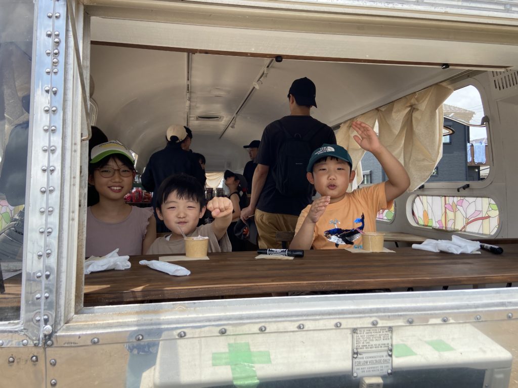検見川五丁目の老人ホームみずほの里跡地に、超かっこいー😎キッチンカーが置いてあるでしょー!あれがオープンしたので、みんな遊びに行ってね!