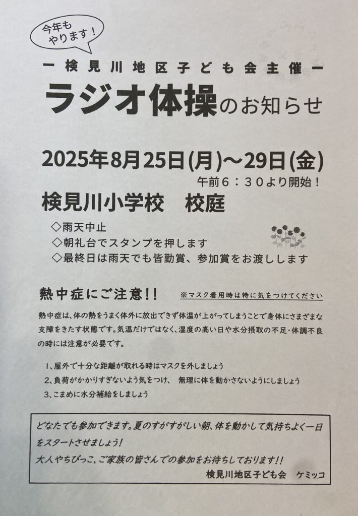 ラジオ体操のお知らせ