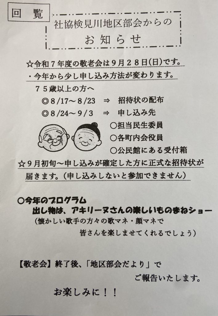 1丁目町内会 お知らせ