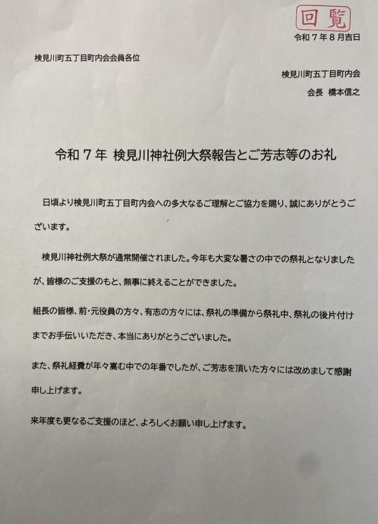 令和7年検見川神社例大祭報告とご芳志等のお礼