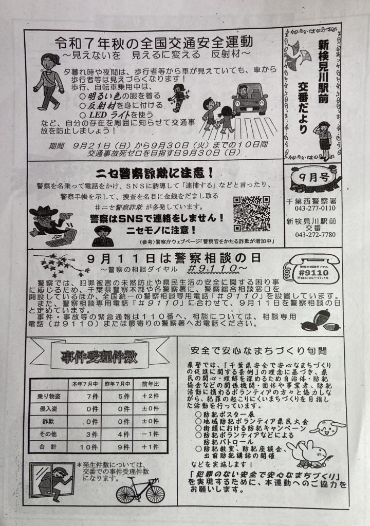 新検見川駅前交番だより