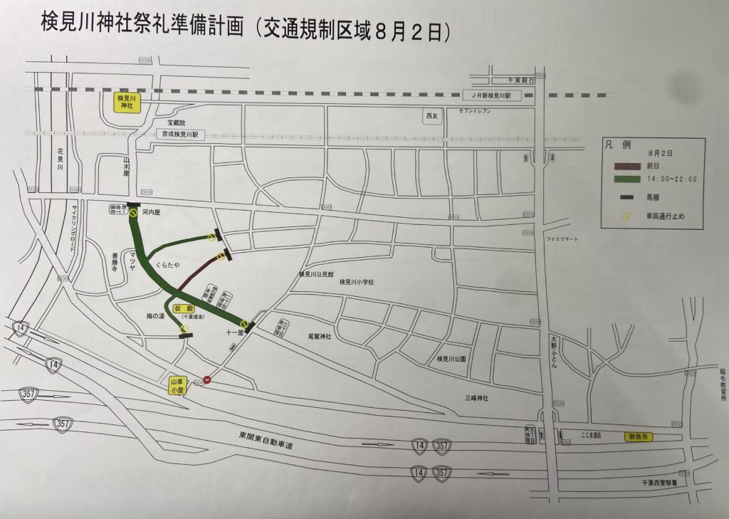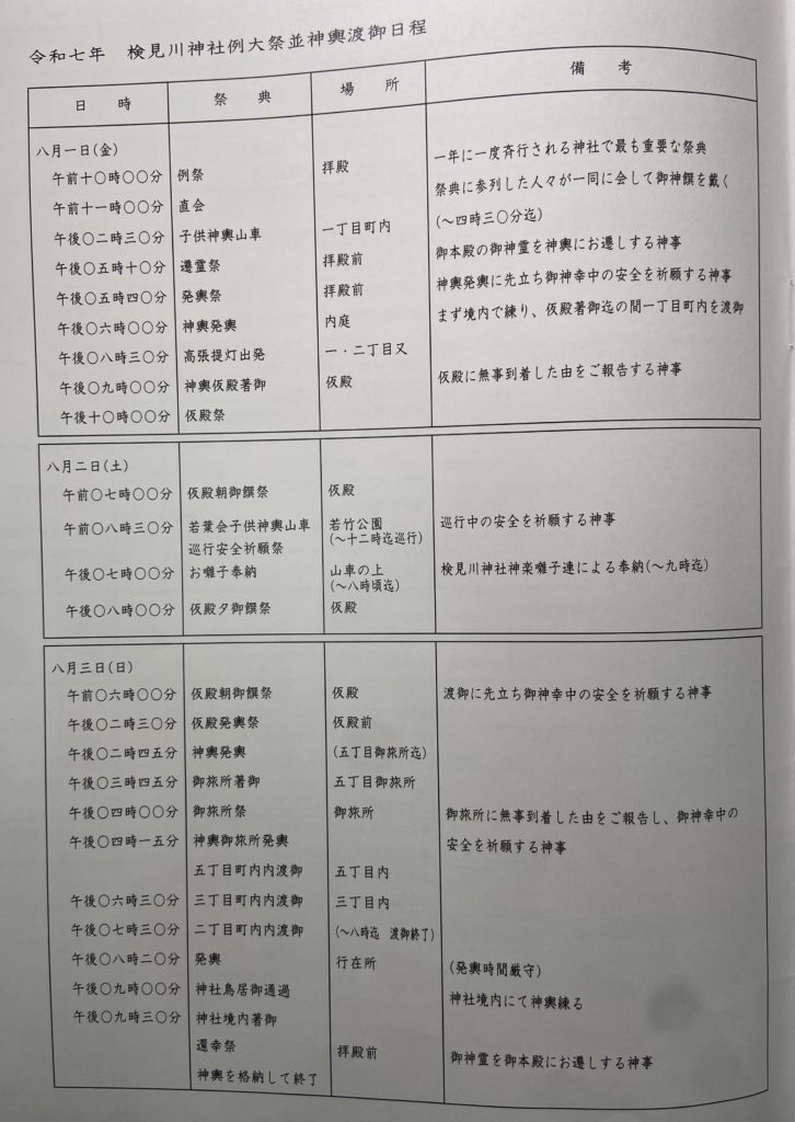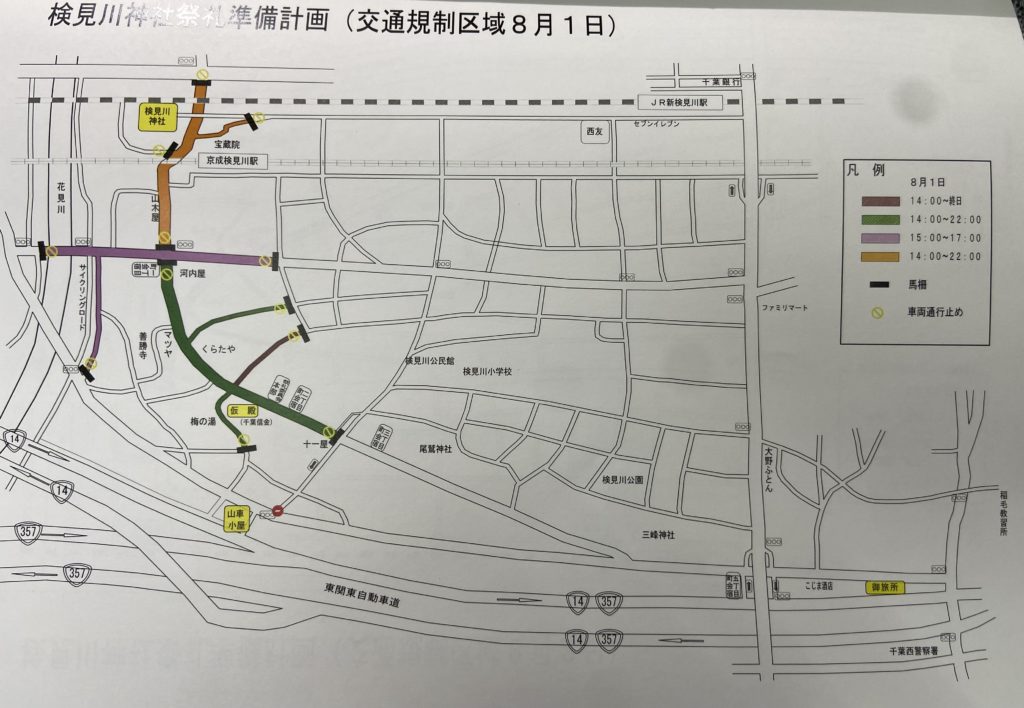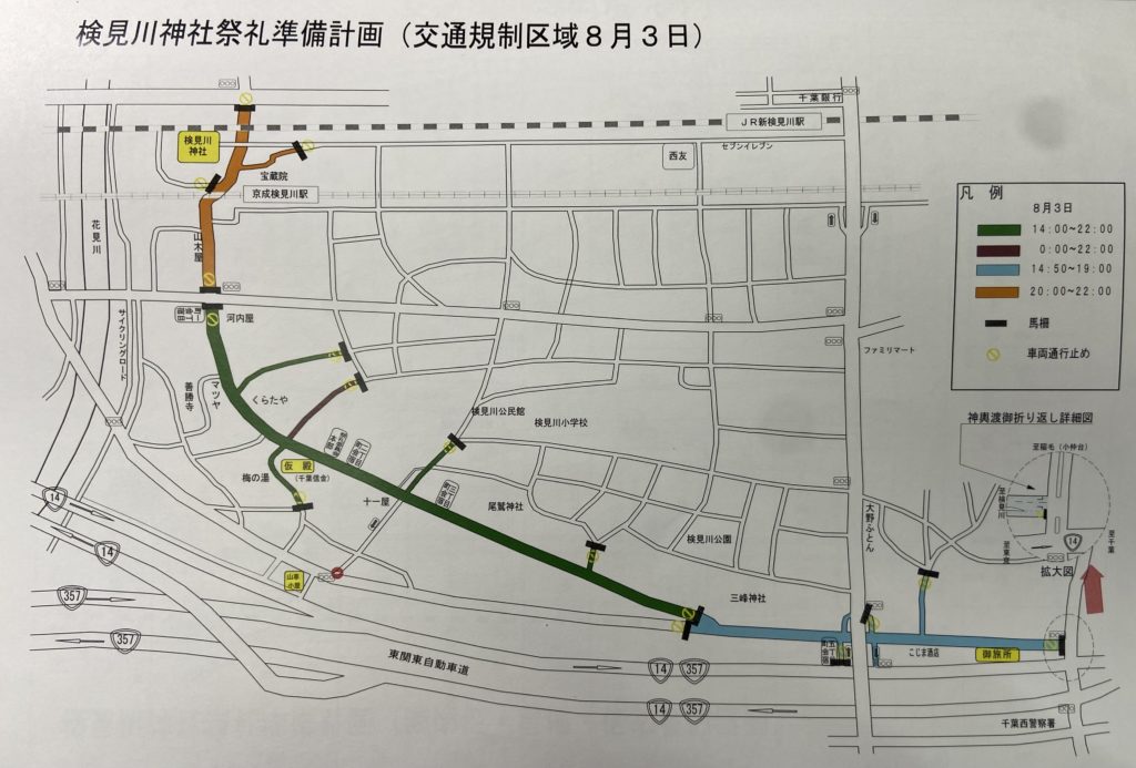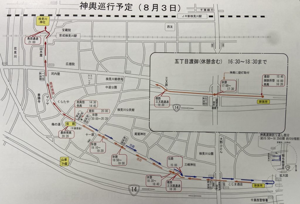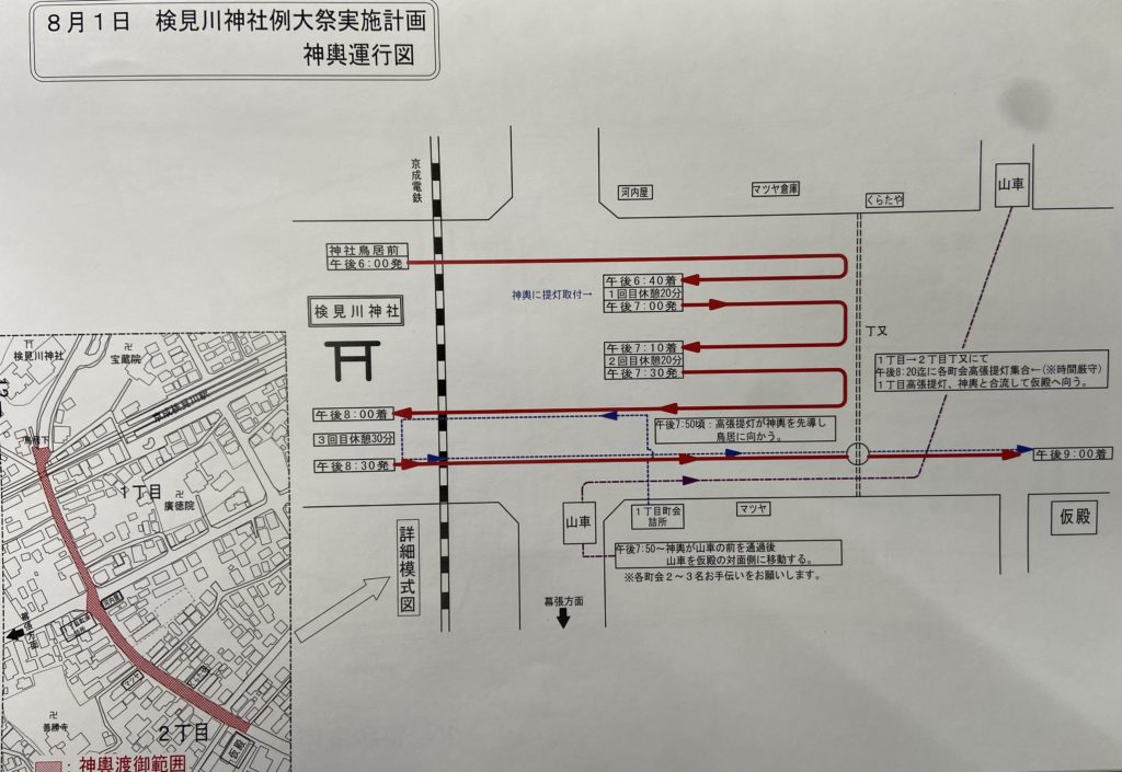 2025年8月1日 〜 3日は「検見川神社例祭」です。「お祭りの歩き方」は昨年よりもグレードアップしてお届けします。3日間、毎日イベントがありますので上手に活用してね! みんな大好きな露天もたくさん出店するし、14時 〜 21時半まで毎日やってるよ! トイレは🚾で記入してあります、仮設トイレは5台設置しました。要チェックです!また、救護所も期間中開設してますよ!今年も目一杯楽しみましょうね!!