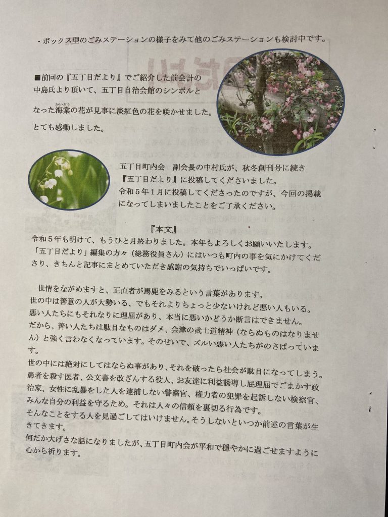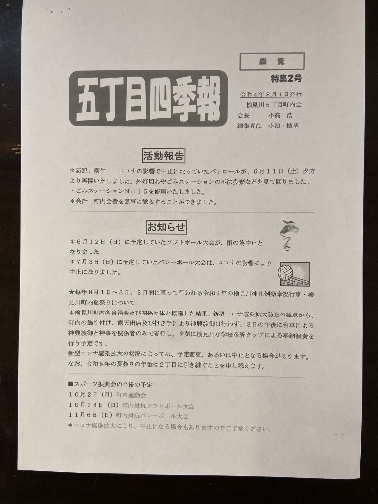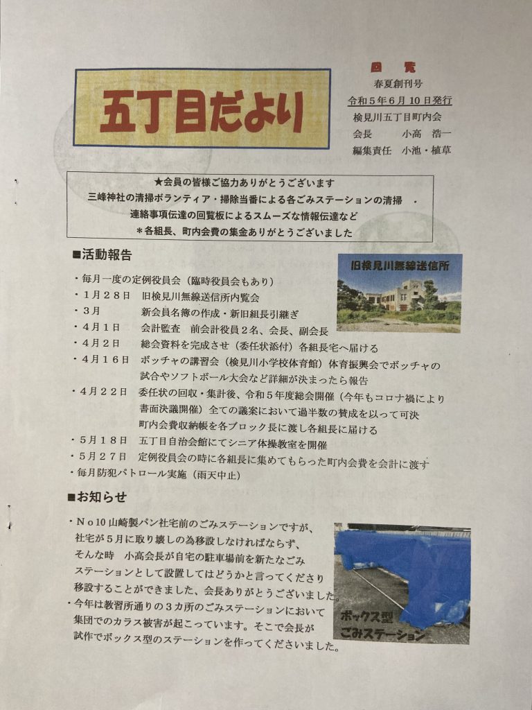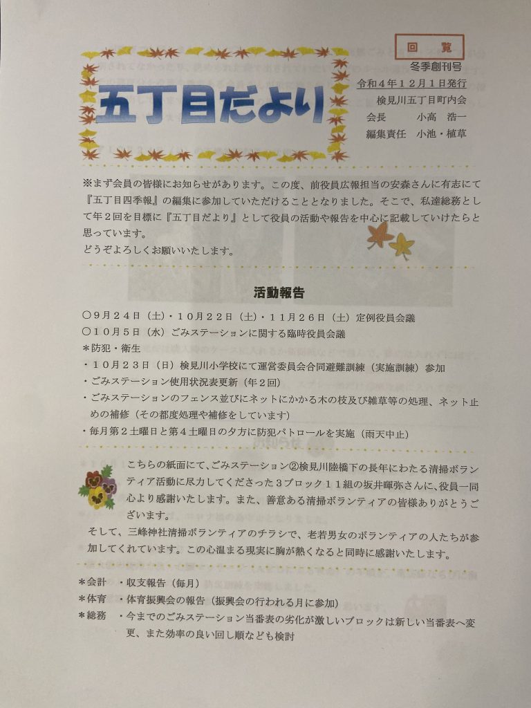 5丁目四季報・五丁目だより