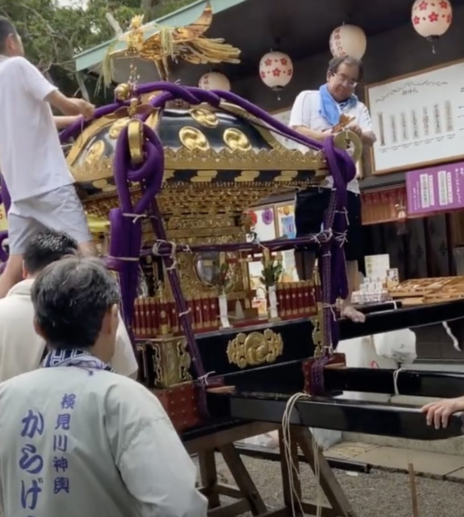 検見川神輿からげの会会長の原田です。神輿からげの会とは、検見川神社の祭礼時に神輿の飾り付けを行います。からげの語源は、検見川の方言でからげるから来ています。意味は、「しばる」「飾り付ける」です。現在会員は3名です。会員募集中です!!